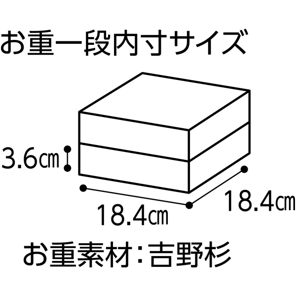 ■お重一段内寸サイズ:184㎜×184㎜×36㎜