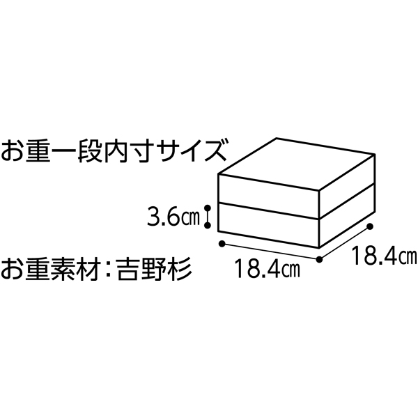■お重一段内寸サイズ:184㎜×184㎜×36㎜