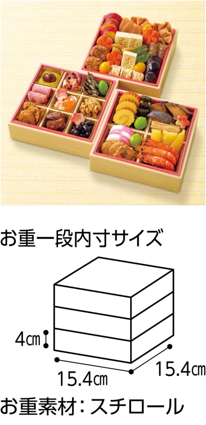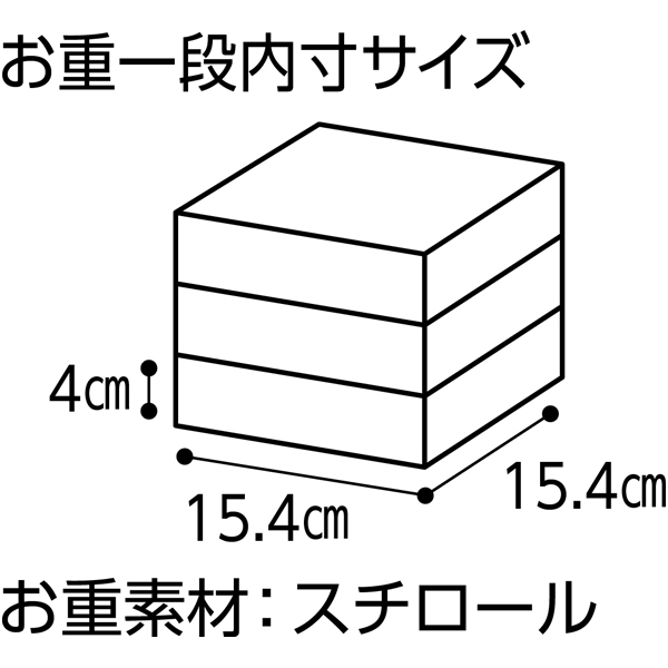 ■お重一段内寸サイズ:154㎜×154㎜×40㎜