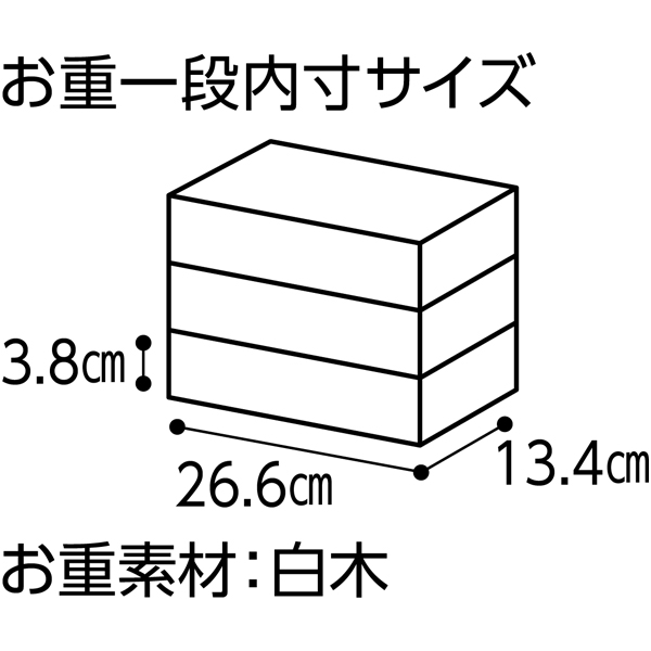 ■お重一段内寸サイズ:266㎜×134㎜×38㎜