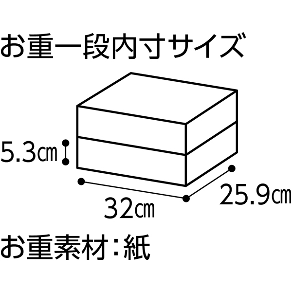■お重一段内寸サイズ:320㎜×259㎜×53㎜