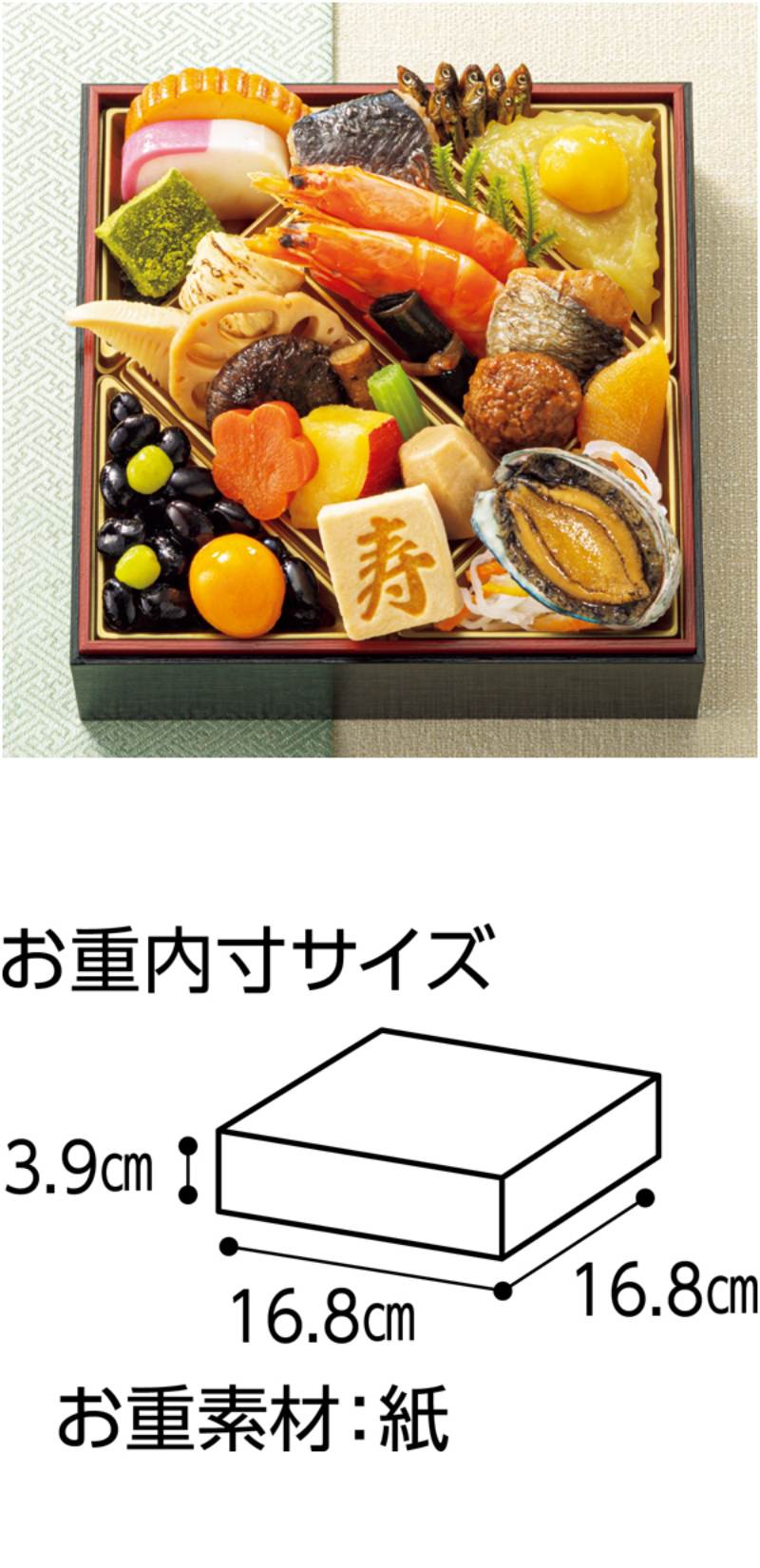 ■お重一段内寸サイズ:168㎜×168㎜×39㎜