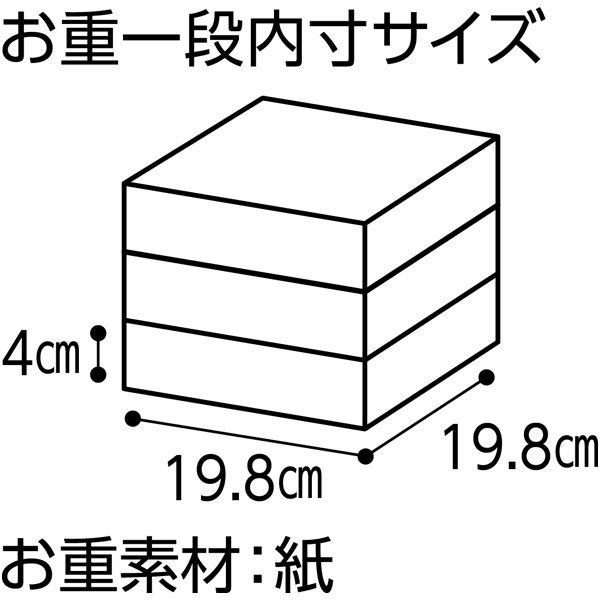■お重一段内寸サイズ:198㎜×198㎜×40㎜