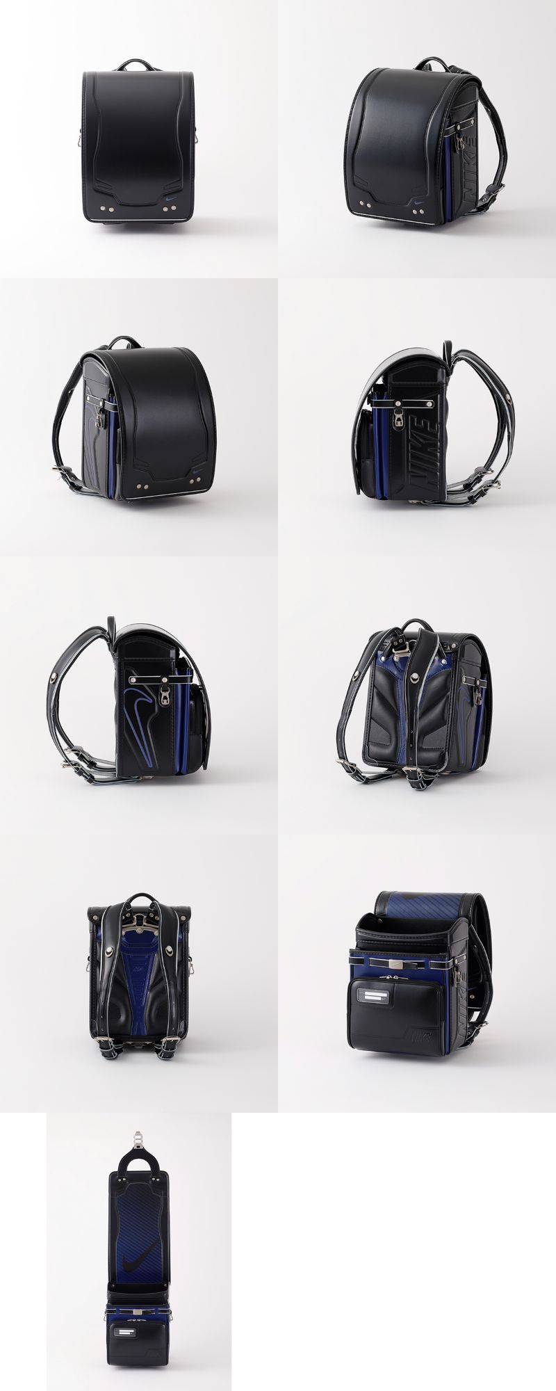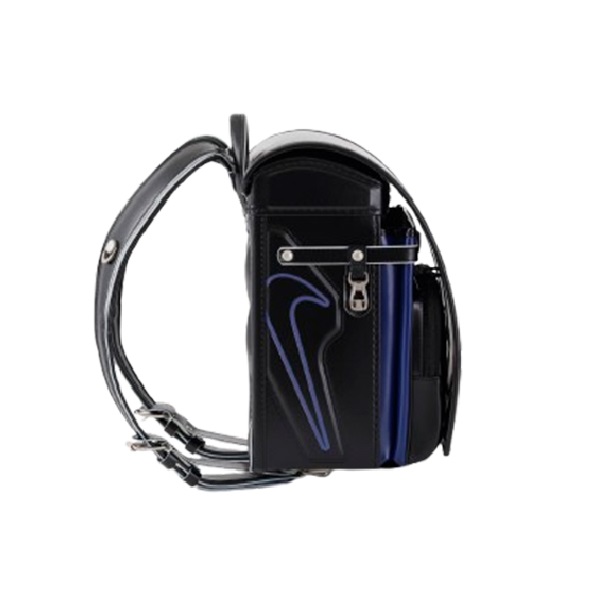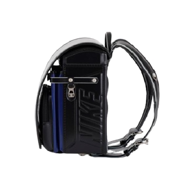 人気のスポーツブランドNIKEのランドセルです。スポーティーなデザインで至る所にブランドロゴがあります。形状はキューブタイプ、調節可能なミラクルロック付。オオマチには暗がりで光る反射材使用のロゴマークです。
