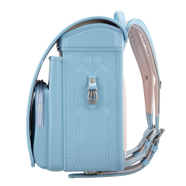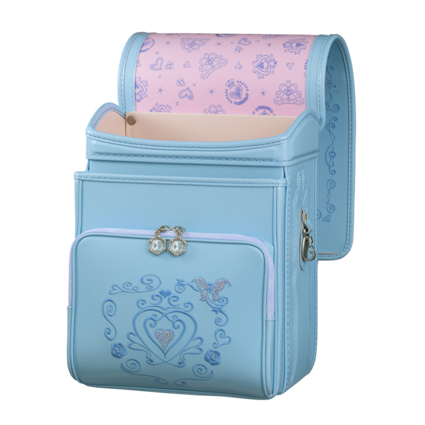 ハートやティアラ、リボンなど女の子が大好きなモチーフを刺繍、スパンコールでゴージャスにあしらい、気品あふれるエレガントなデザインに仕上げました。毎日の通学もお姫様気分になれるランドセルです。