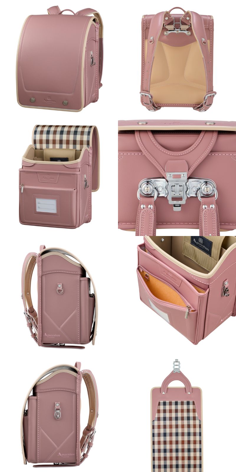 アクアスキュータムの紋章のカブセ鋲とカブセ裏には、アクアスキュータムのチェック柄を施しております。シンプルで高級感のあるデザインです。