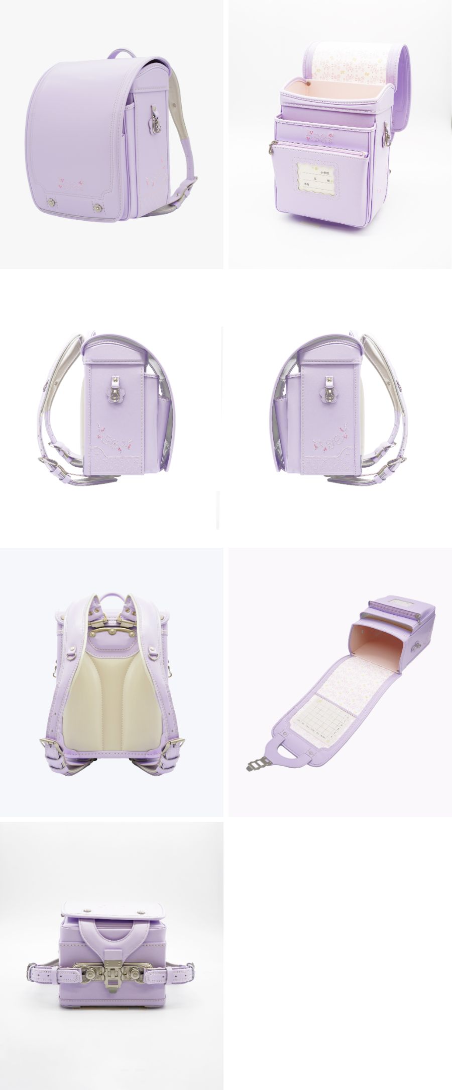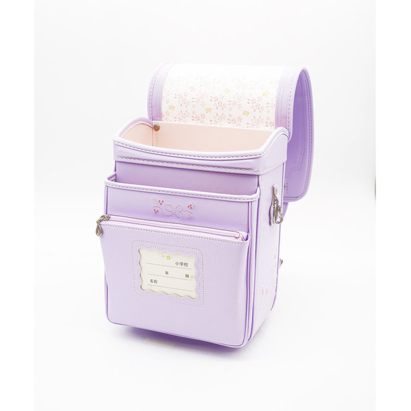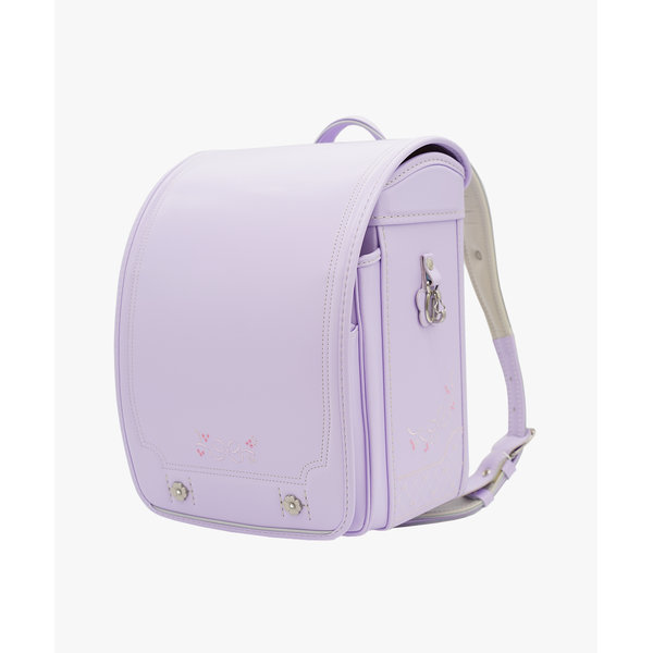 パステルカラーにリボンモチーフがさりげなく映える上品さも備えたフェミニンなランドセル。