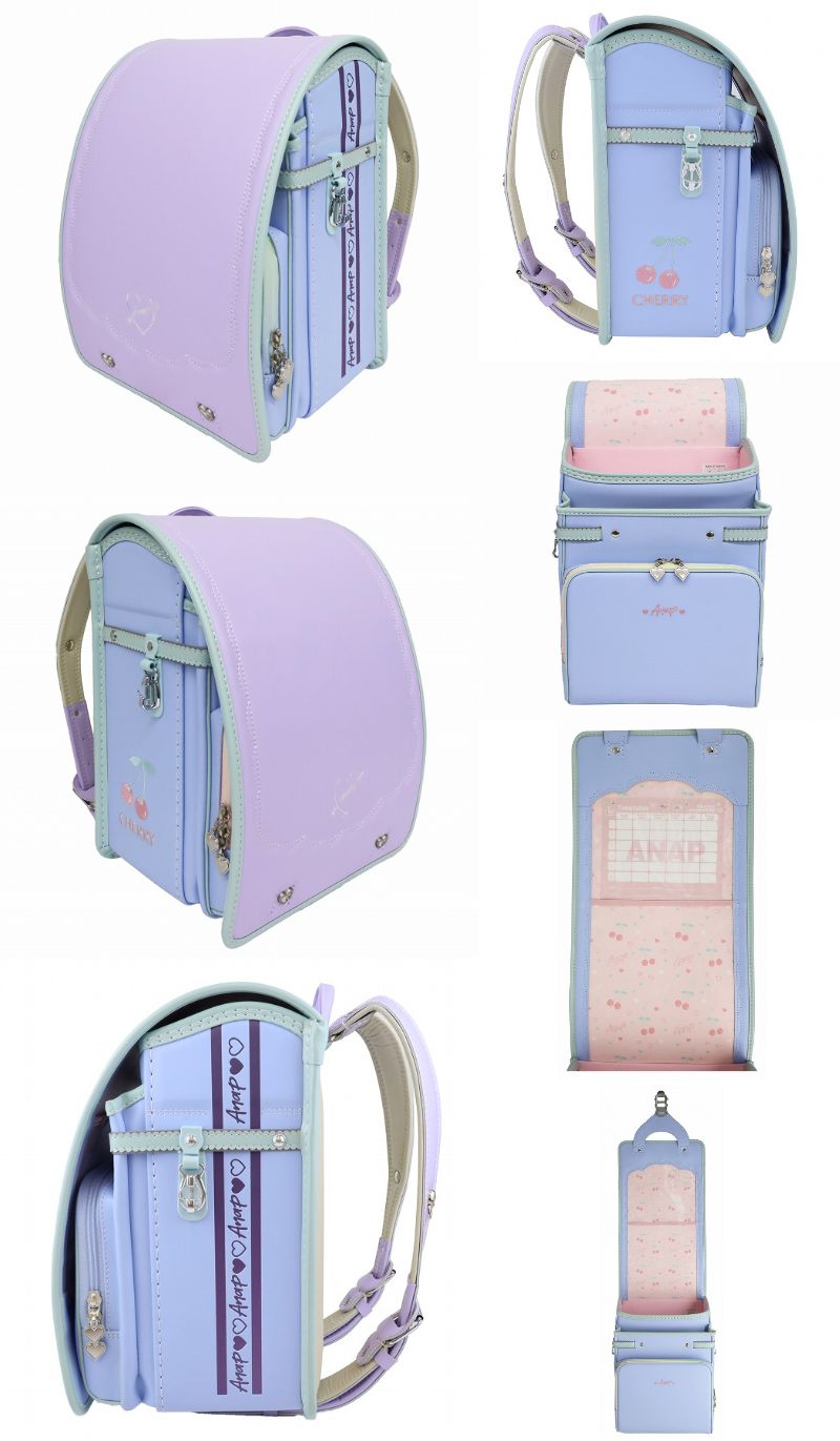ANAPロゴテープ風の反射ラインとペールカラーのチェリー柄刺しゅうがポイント。機能性とファッション性を両立させたイオン限定ランドセル。