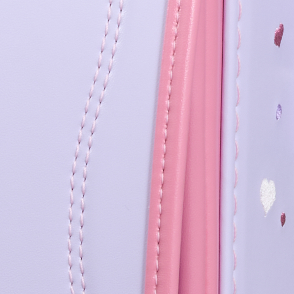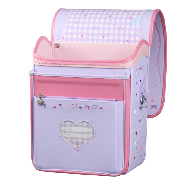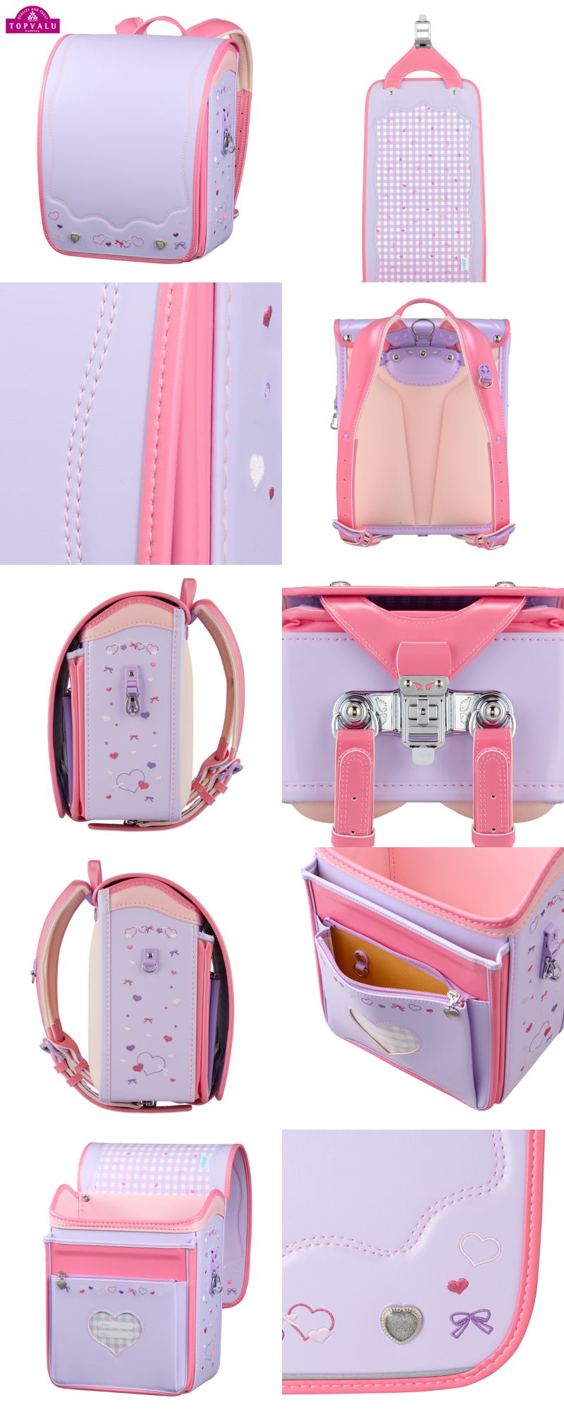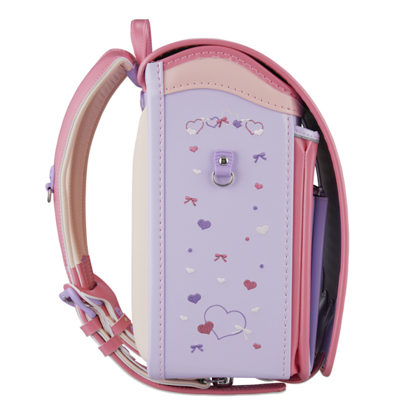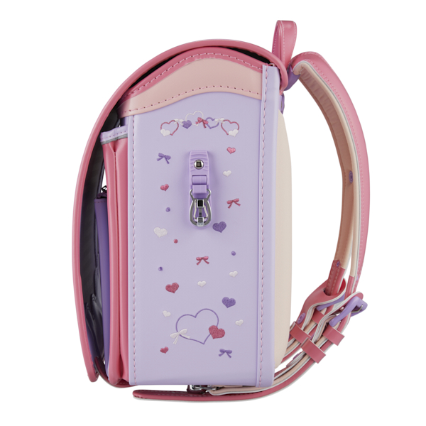 ハートとリボンのモチーフを散りばめた、かわいいが溢れ出すランドセル。