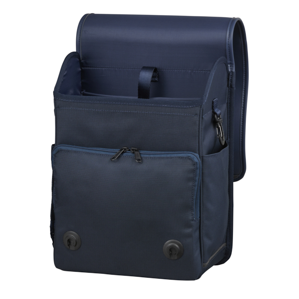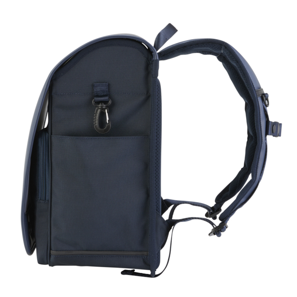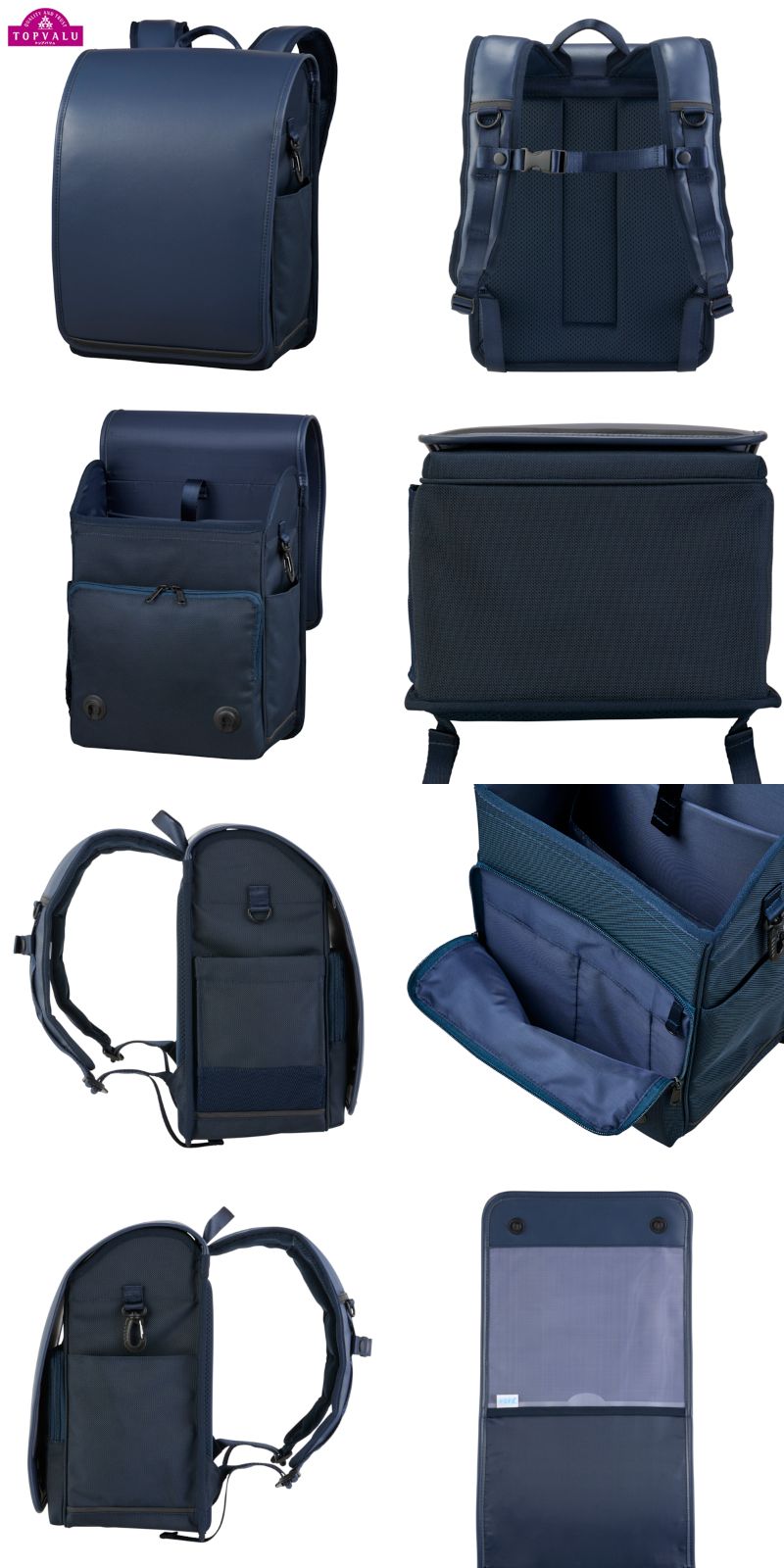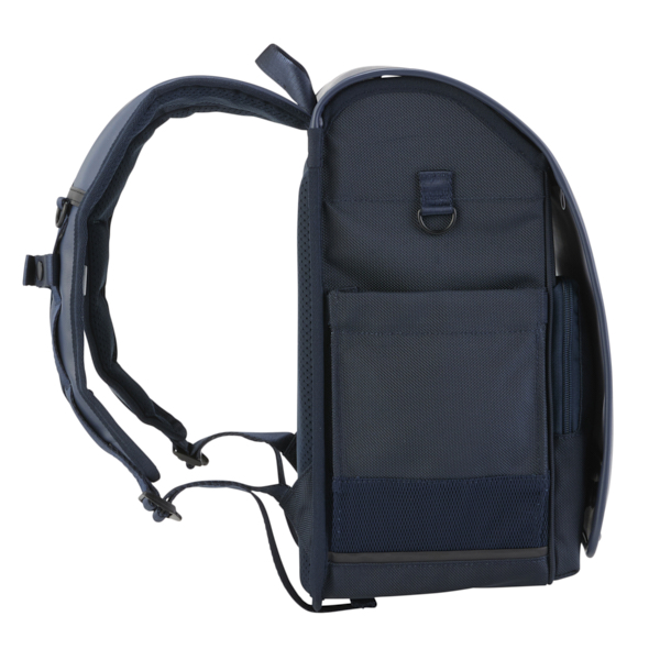 合皮とポリエステルのハーフ仕様のランドセルで軽量設計。背あてとショルダーにF‐touchを使い通気性とクッション性に優れている。チェストベルト付きで、背負いやすいモデル。