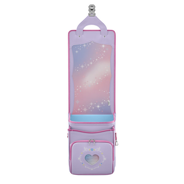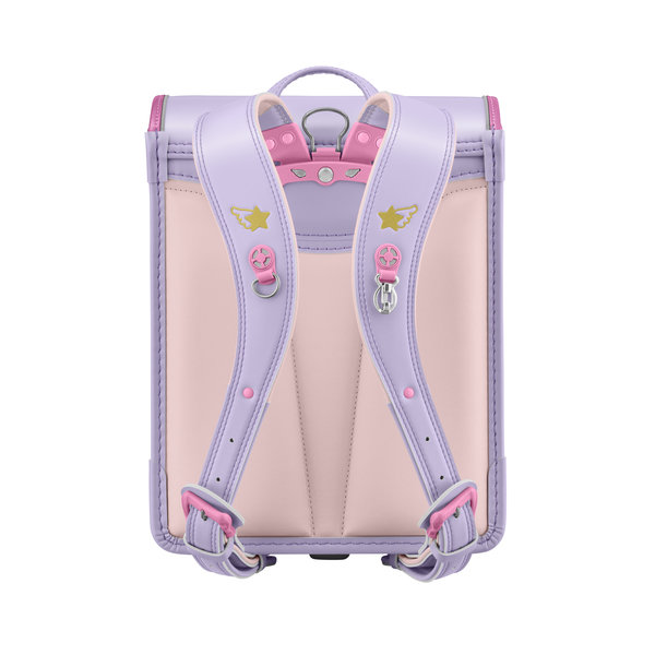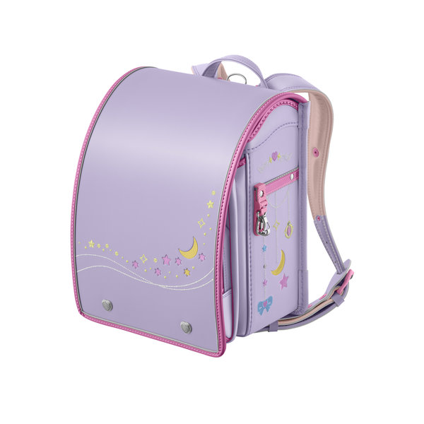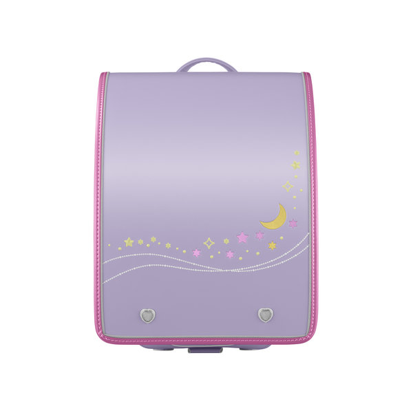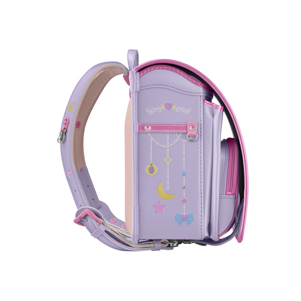 キラキラした魔法の光をイメージしたカブセの刺しゅう、随所に星や月型の反射材を使うなど、ランドセル全体がマジカルな雰囲気に。ライトが当たると反射して光るハート型の飾り鋲など、魔法アイテムのようなパーツにも注目です。