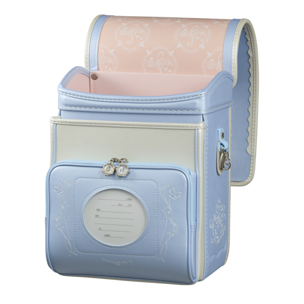 気品ある上品な刺繍をあしらったエレガントなデザイン。ホワイトとのコンビカラーにし、気品あふれるハイクラスなドレスのようなランドセル。