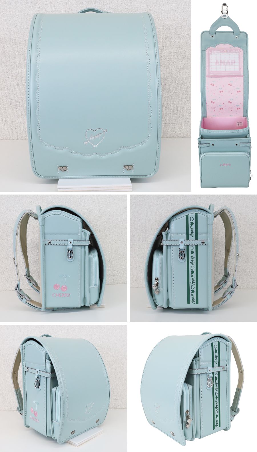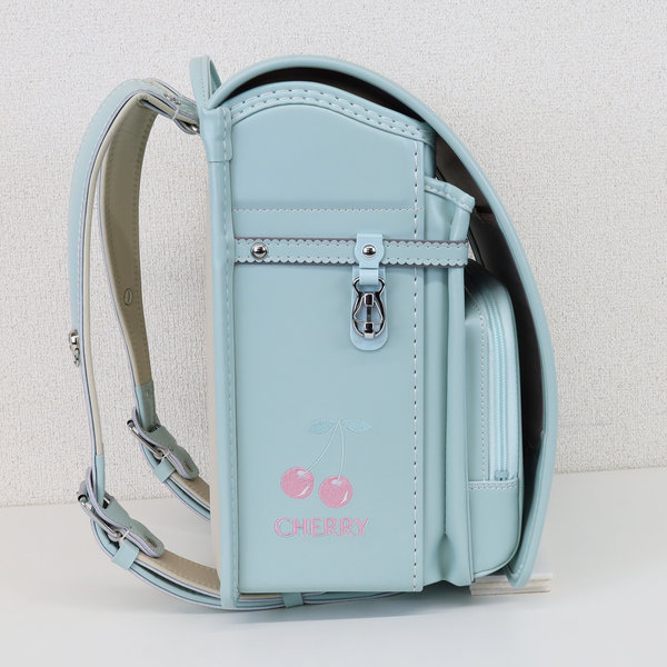 ANAPロゴテープ風の反射ラインとペールカラーのチェリー柄刺しゅうがポイント。機能性とファッション性を両立させたイオン限定ランドセル。