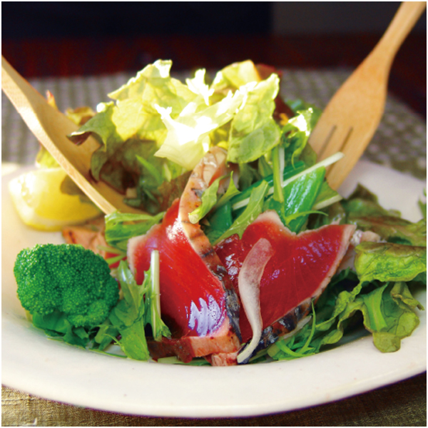 一本釣りの鰹を船上で急速凍結。鮮度を保ったまま表面を香ばしく焼き上げました。