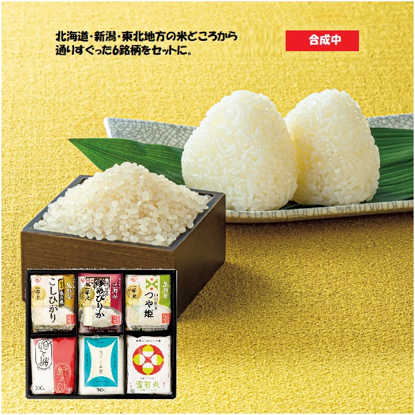 北海道・新潟・東北地方の米どころから選りすぐった6銘柄をセットに。