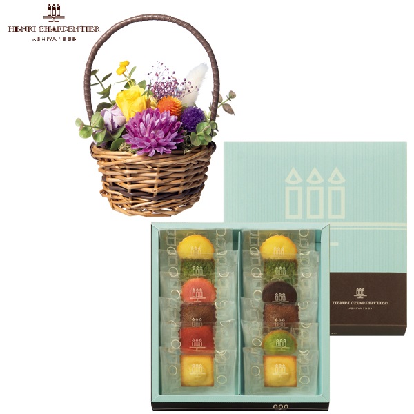 アンリ・シャルパンティエ プティ・ガトー・アソルティと プリザーブドフラワー「ガーデン」