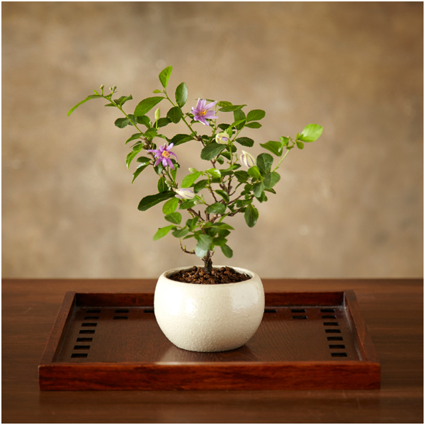 スイレンに似た薄い紫色の花を、春から夏にかけて咲かせる睡蓮木(すいれんぼく)。可憐な花姿と艶のある深い緑は、上品で美しく、見るだけで心が落ち着きます。お父さんの新しい趣味に、小さな鉢の中で四季を楽しむことができる盆栽のギフトはいかがですか。