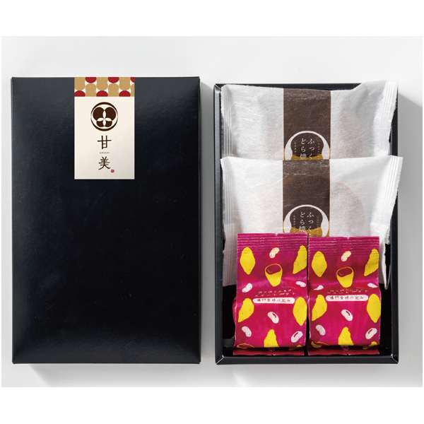 和のおもてなしにぴったりな、小豆とやさしい甘みのサツマイモでできたスイートポテトと、ふんわりどら焼きをセットにしました。