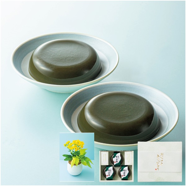 室内に飾りやすいおしゃれなインテリアグリーン。佐賀嬉野の玉露を使用してつくり上げた、ぷるぷる食感のわらび餅を添えて。