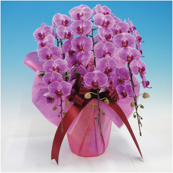 濃いピンクの胡蝶蘭は、その存在感でお部屋を華やかにしてくれます。落ちつきのある上品さと鮮やかな色合いが魅力です。日頃の感謝を込めて父の日の贈り物に!