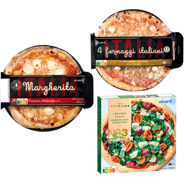 ピッツァマルゲリータ420g、野菜 ペストソース パルミジャーノ レッジャーノのピッツァ400g、クワトロフォルマッジ390g