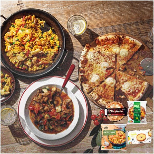 ピッツァマルゲリータ420g、BIO野菜のラタトゥイユ600g、シーフードパエリア900g、小さなレモンのタルト130g(2個入)
