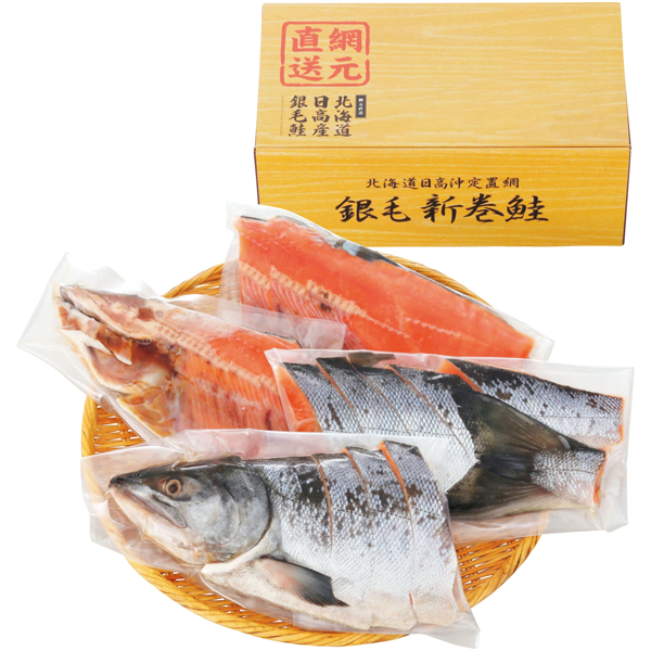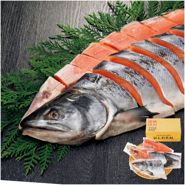 日高沖の定置網で漁吉丸が漁獲した秋鮭を、水揚げ後直ちに処理したこだわりの新巻鮭です。