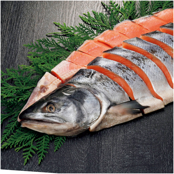 甘塩秋鮭1尾姿切身(1.6kg、4分割真空、四段箱)