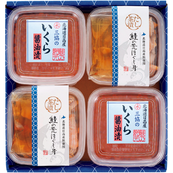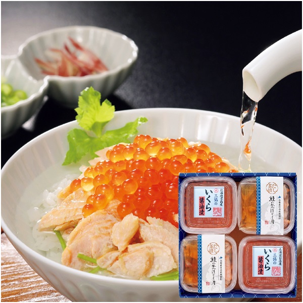 いくら醤油漬(北海道日高産原料)60g×2、鮭のだし茶漬け60g(ほぐし身40g、だし20g)×2