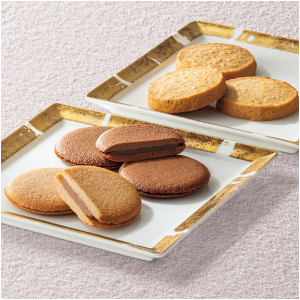 チョコレートの味わいを楽しんでいただくことを大切にしたクッキーのアソートメント。チョコレートを練り込んで軽やかに焼き上げたラングドシャでチョコレートをサンドしたラングドシャクッキーと、ジャンドゥーヤチョコレートと刻んだヘーゼルナッツを織り込んだサブレノアを詰合せました。