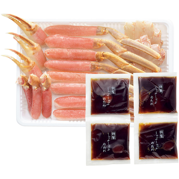 生ずわいがにカット(南蛮付きポーション、二本爪ポーション、爪下ポーション、肩肉半割)600g、しゃぶしゃぶのたれ28g×4