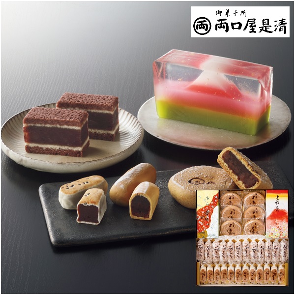 「よも山」・「旅まくら」・「志なの路」味わい深い3種の焼菓子、雄大な赤富士を表現した「吉祥羹」、上品でやさしい甘さの「をちこち」を詰合せいたしました。