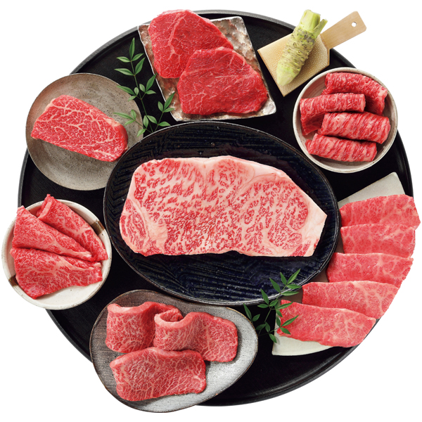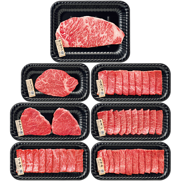 黒毛和牛の高級部位の7種を一度に楽しめる焼肉とステーキの詰合せです。