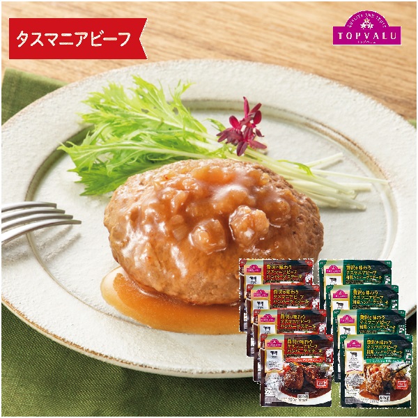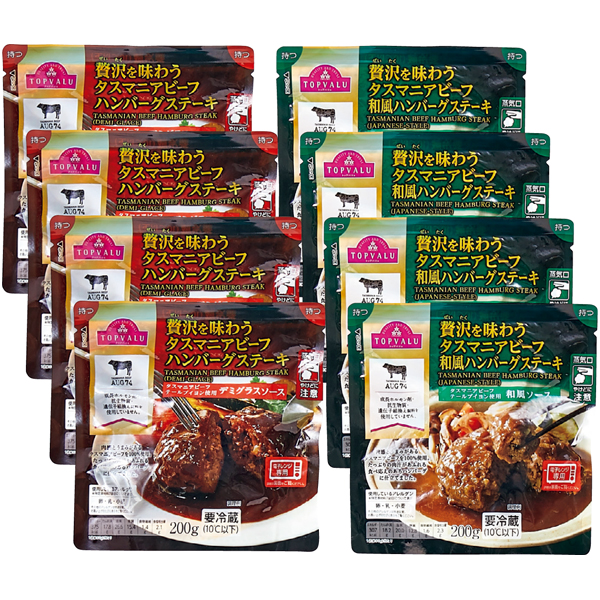 タスマニアビーフハンバーグステーキ(デミグラスソース)200g×4、タスマニアビーフ和風ハンバーグステーキ(和風ソース)200g×4(各原料:肉/オーストラリア産)