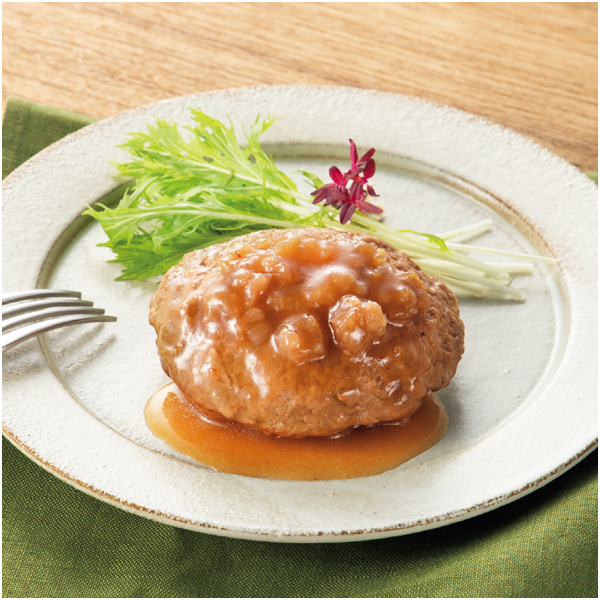 タスマニアビーフを使った肉汁たっぷり、ふっくら厚みのあるハンバーグです。デミグラスソースと和風ソースの2種類をセットにしました。
