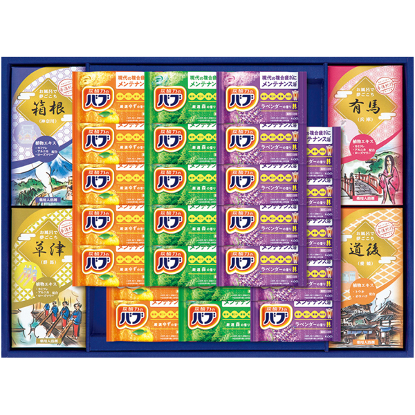 バブ(ラベンダーの香り・森の香り・ゆずの香り)各10、夢湯紀行薬用入浴剤(道後・有馬・草津・箱根)各25g×3包