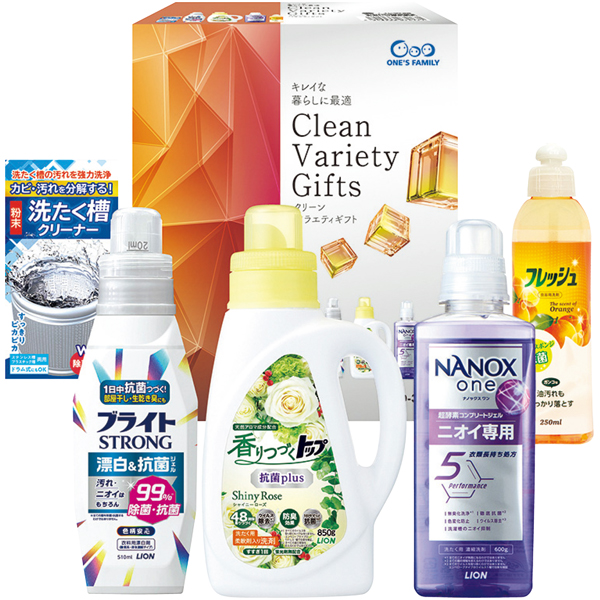 NANOXoneニオイ専用本体大型600g、香りつづくトップ抗菌plus本体850g、ブライトストロング510ml、食器用洗剤オレンジ250ml、洗たく槽クリーナー