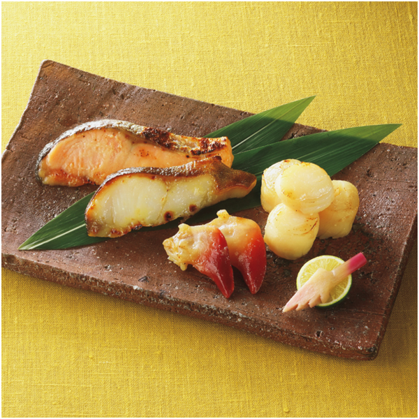 西京漬(鮭・銀鱈)各2切、北寄貝(2個入)、帆立(4個入)