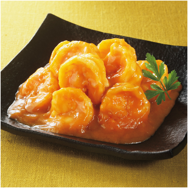 海老を殻ごとローストして煮込んだ旨みが凝縮されたソースを、フライパンで両面焼いた海老と絡めるだけ。簡単調理で名店の海老チリが完成します。