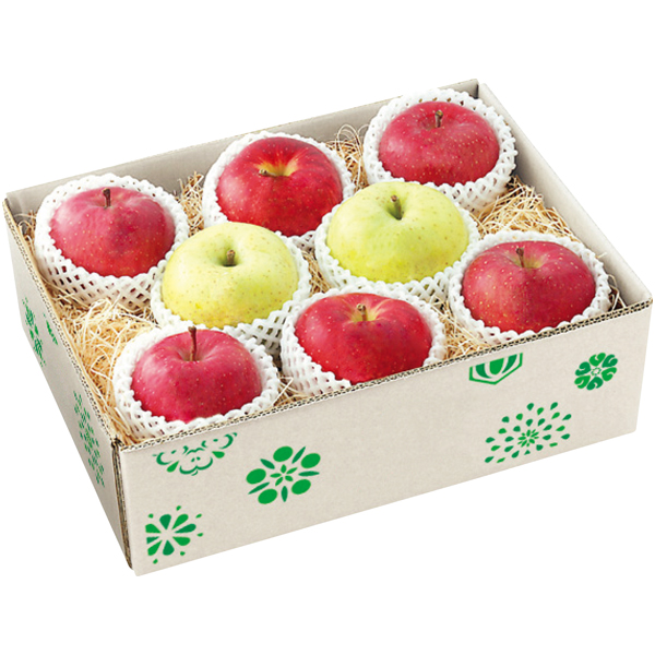 サンふじりんご秀品Lサイズ以上4個、王林秀品Lサイズ以上2個、ジョナゴールド秀品Lサイズ以上2個、計2.5kg以上