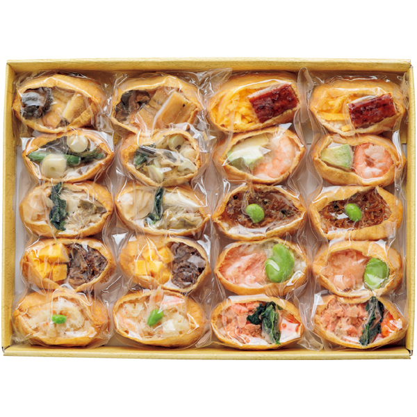 鮭、明太子、ちりめん、えび、鰻、穴子、牛しぐれ、焼鯖、山菜、ずわいがに、各25g×2 計20