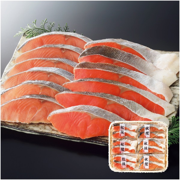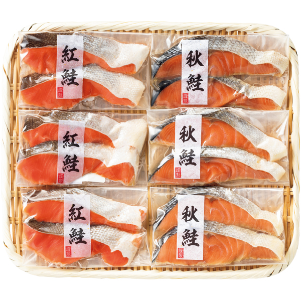 甘塩味に仕上げた紅鮭と秋鮭の切身を詰合せました。