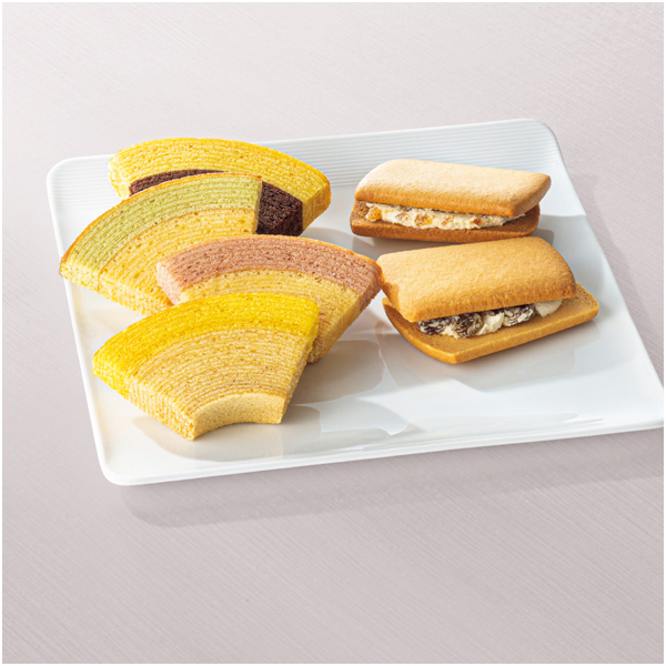 2つの層に焼き上げた「フルーツクーヘン」と果肉をサンドした「フルーツサンド」の詰合せです。