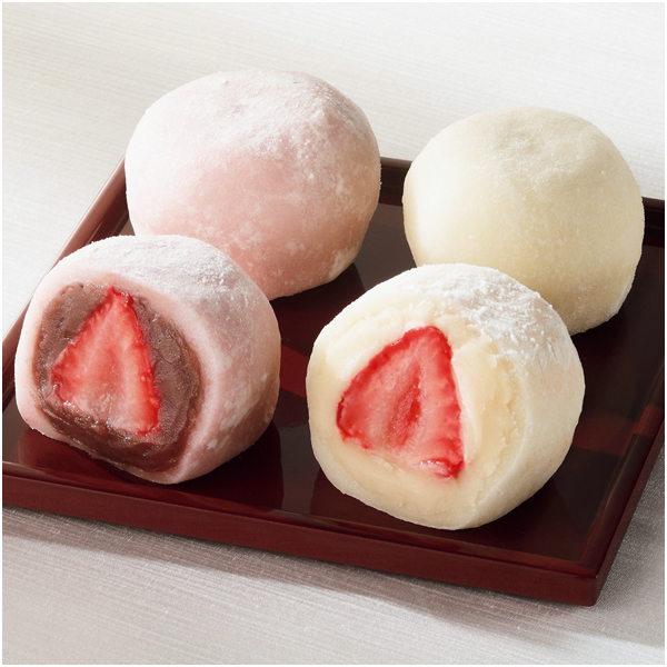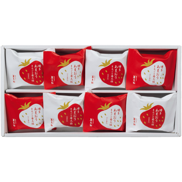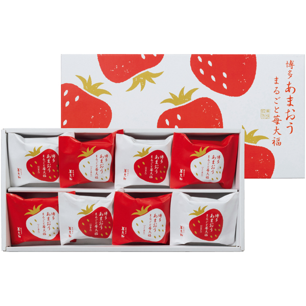 博多あまおうをまるごと一粒使用した、紅白2種類の苺大福をお届けいたします。