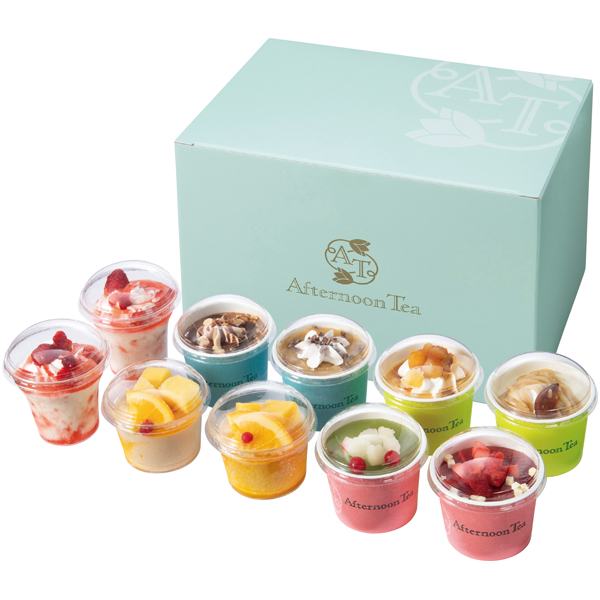 苺のパフェ80ml×2、スイートフルーツティーパフェ82ml×2、洋梨とアールグレイ103ml、苺とチーズ103ml、渋皮栗のモンブラン94ml、スイートポテト103ml、チョコバナナ103ml、ダブルチョコレート103ml