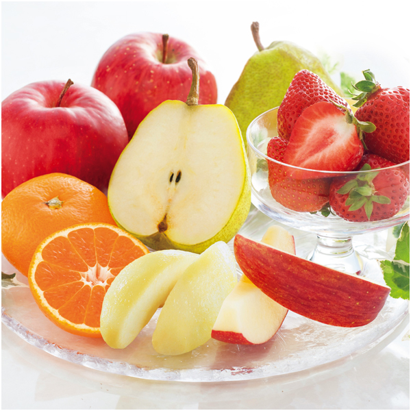 青森県産サンふじりんご・ジョナゴールド各2個(各1個250g以上)、山形県産ラ・フランス2個(1個250g以上)、福岡県産あまおう苺1パック(250g以上)、和歌山県産有田みかん(S又はMサイズ、計800g以上)