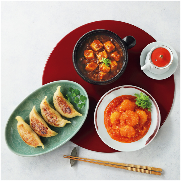大海老のチリソース130g、本格四川風麻婆豆腐130g、あふれる肉汁餃子35g×4