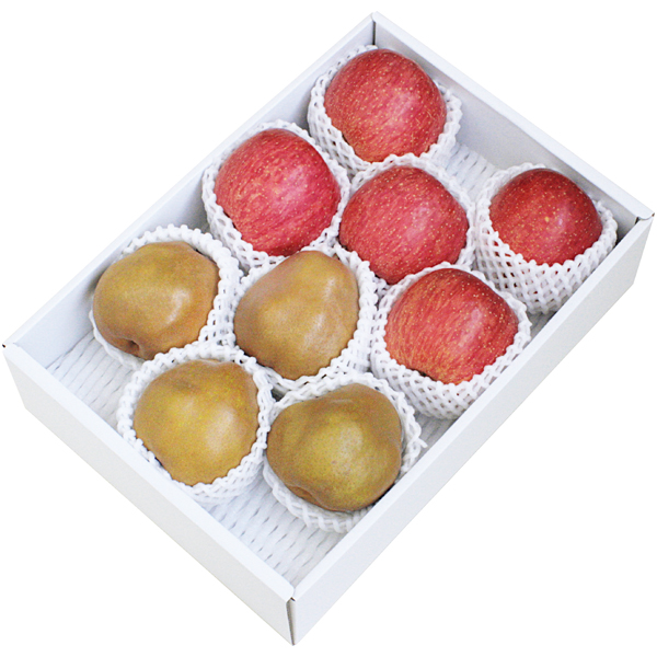 香りが豊かでまったりとした食感のゴールド ラ・フランスと熟した実を収穫するサンふじりんごの詰合せ。