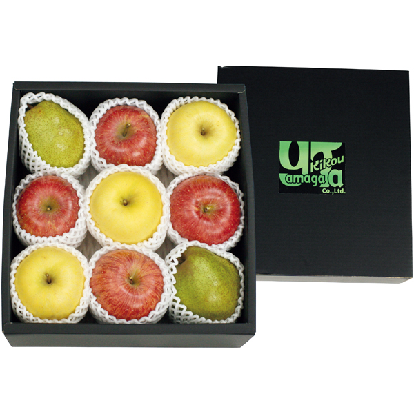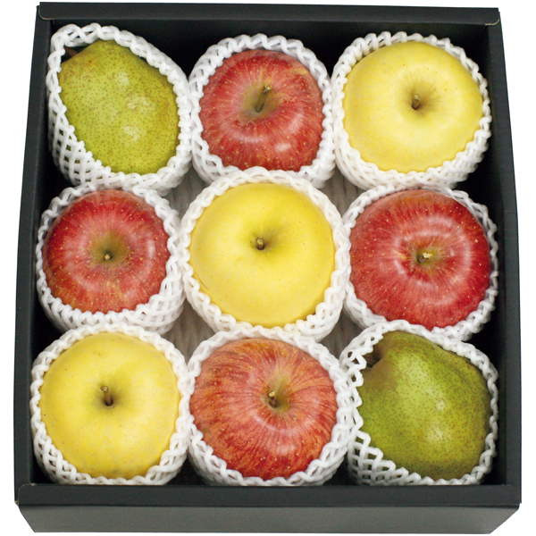 サンふじりんご4個(秀品)、ラ・フランス2個(秀品)、シナノゴールド又ははるか他3個(秀品)、計2.8kg以上