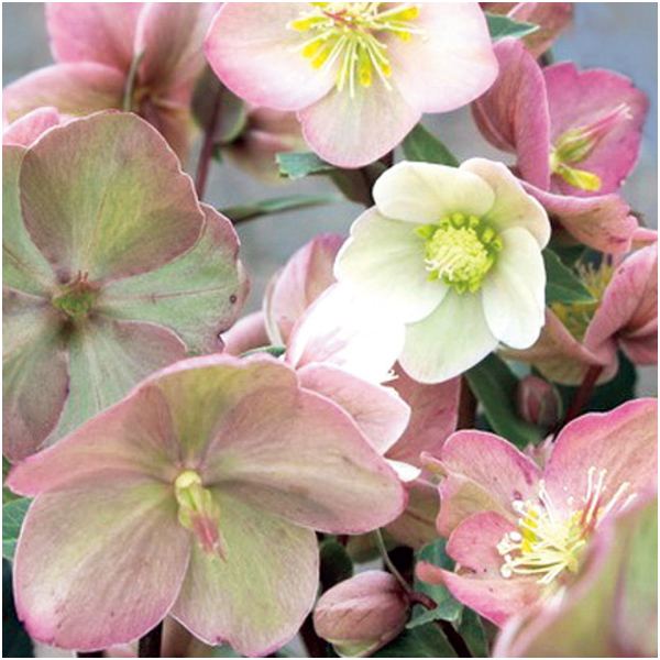 気温や日照などの条件により花色が変化し、一輪の中に白やピンク、クリーム色が入り、晩春まで多くの花色が楽しめます。